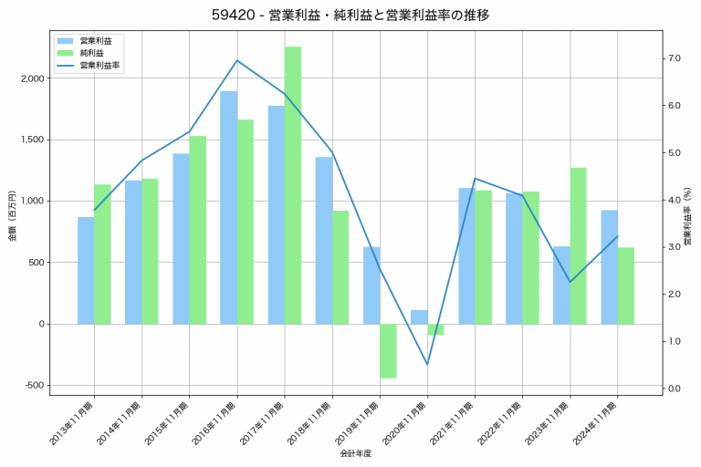 日本フイルコンの2024年11月期の営業利益は924百万円、営業利益率は3.2%と前年比293百万円増、営業利益率は1.0%pt増です。
