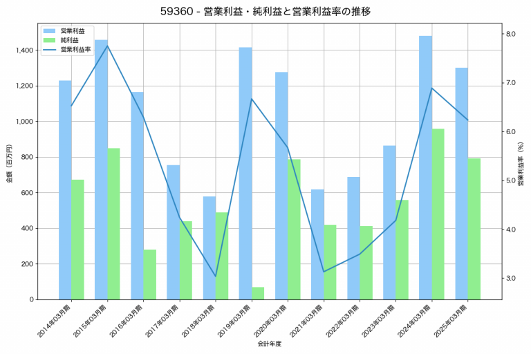 アルインコの2025年03月期の営業利益は2,196百万円、営業利益率は3.6%と前年比415百万円増、営業利益率は0.5%pt増です。