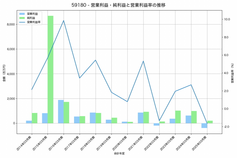 駒井ハルテックの2025年03月期の営業利益は288百万円、営業利益率は0.7%と前年比434百万円減、営業利益率は0.6%pt減です。