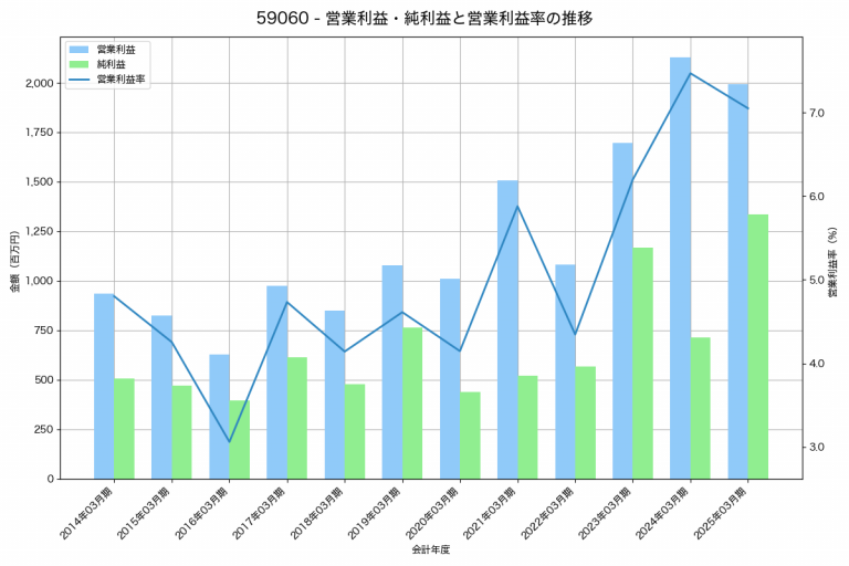 エムケー精工の2025年03月期の営業利益は1,993百万円、営業利益率は7.1%と前年比134百万円減、営業利益率は0.4%pt減です。