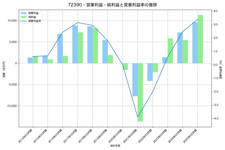 曙ブレーキ工業の2025年03月期の営業利益は3,124百万円、営業利益率は1.9%と前年比29百万円減、営業利益率は0.0%pt増です。