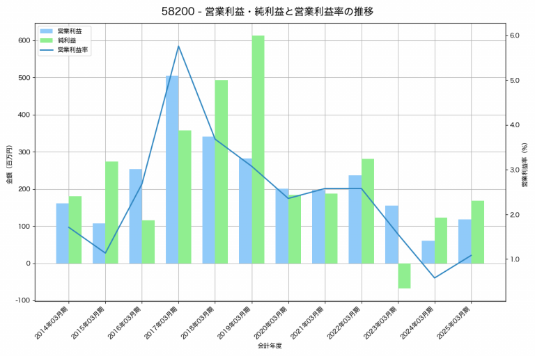 三ッ星の2025年03月期の営業利益は118百万円、営業利益率は1.1%と前年比58百万円増、営業利益率は0.5%pt増です。