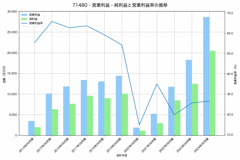 ジャパンインベストメントアドバイザーの2024年12月期の営業利益は12,110百万円、営業利益率は38.9%と前年比6,618百万円増、営業利益率は13.7%pt増です。