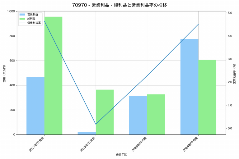 さくらさくプラスの2024年07月期の営業利益は775百万円、営業利益率は4.5%と前年比461百万円増、営業利益率は2.2%pt増です。