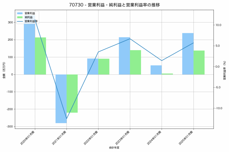 ナイルの2024年12月期の営業利益は-677百万円、営業利益率は-12.4%と前年比0百万円増、営業利益率は0.5%pt増です。