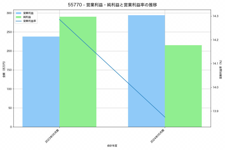 ネットスターズの2024年12月期の営業利益は-84百万円、営業利益率は-2.2%と前年比237百万円増、営業利益率は6.5%pt増です。