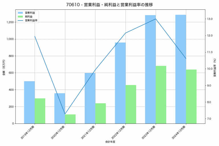 AVILENの2024年12月期の営業利益は189百万円、営業利益率は15.2%と前年比18百万円増、営業利益率は3.2%pt減です。