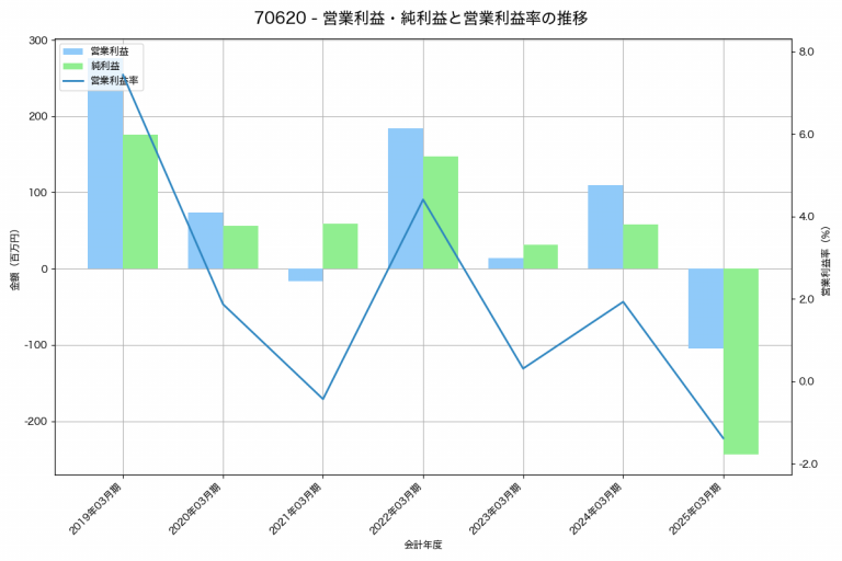 フレアスの2025年03月期の営業利益は-105百万円、営業利益率は-1.4%と前年比215百万円減、営業利益率は3.3%pt減です。