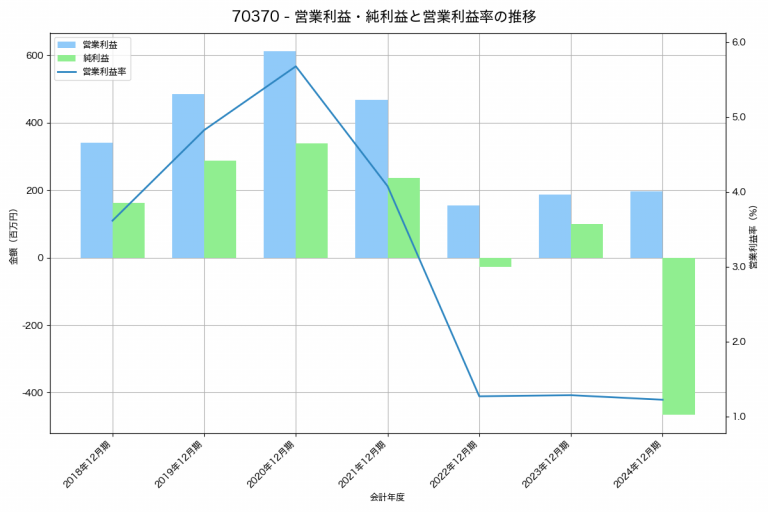 フロンティア・マネジメントの2024年12月期の営業利益は-632百万円、営業利益率は-6.8%と前年比1,883百万円減、営業利益率は19.3%pt減です。