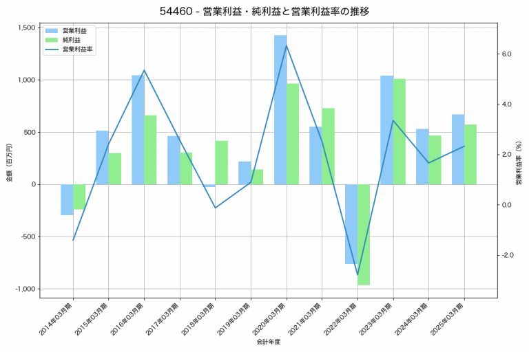 北越メタルの2025年03月期の営業利益は668百万円、営業利益率は2.3%と前年比140百万円増、営業利益率は0.7%pt増です。