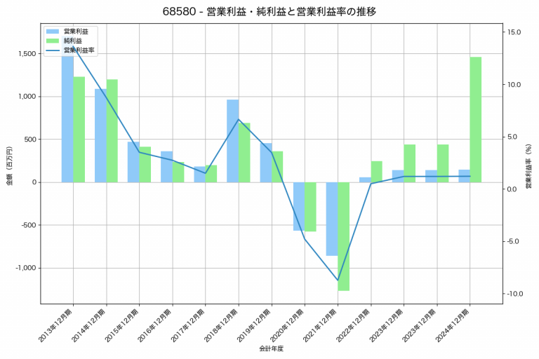 クリエートメディックの2024年12月期の営業利益は692百万円、営業利益率は5.3%と前年比111百万円減、営業利益率は1.1%pt減です。