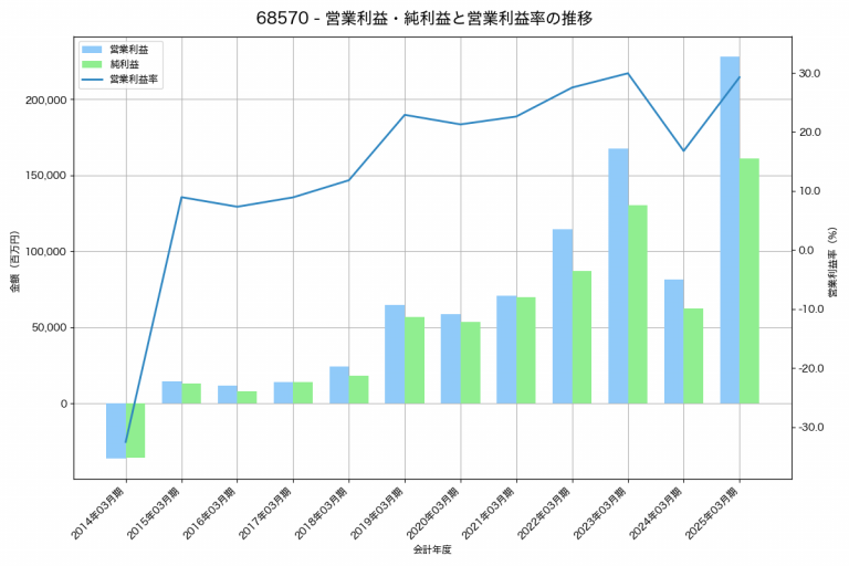 アドバンテストの2025年03月期の営業利益は228,161百万円、営業利益率は29.3%と前年比146,533百万円増、営業利益率は12.5%pt増です。