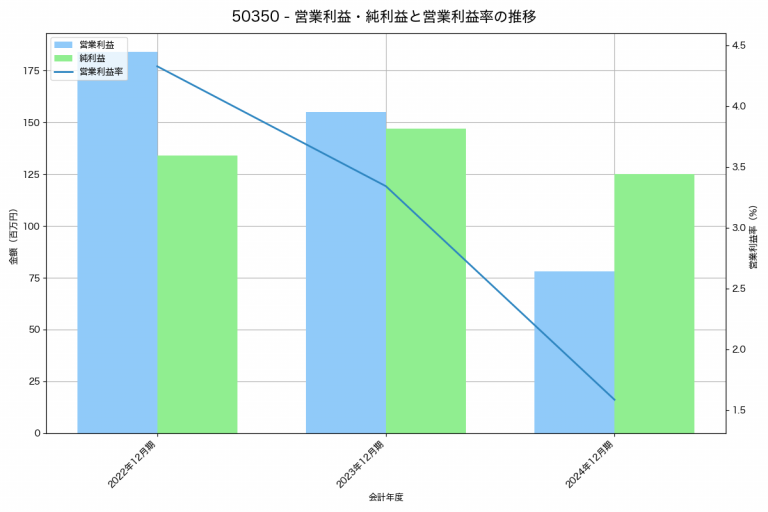 HOUSEIの2024年12月期の営業利益は78百万円、営業利益率は1.6%と前年比77百万円減、営業利益率は1.8%pt減です。