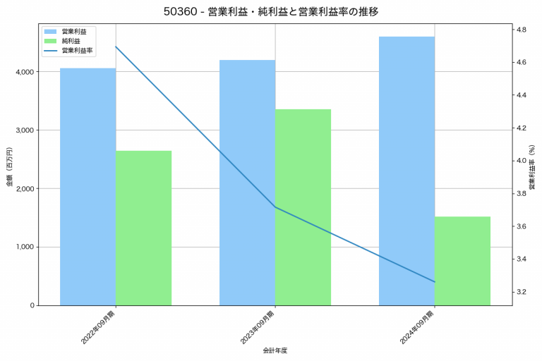 日本ビジネスシステムズの2024年09月期の営業利益は4,593百万円、営業利益率は3.3%と前年比401百万円増、営業利益率は0.5%pt減です。
