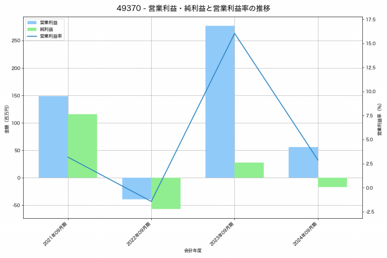 Waqooの2024年09月期の営業利益は56百万円、営業利益率は2.9%と前年比221百万円減、営業利益率は13.2%pt減です。