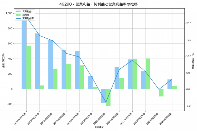 アジュバンホールディングスの2025年03月期の営業利益は126百万円、営業利益率は3.1%と前年比127百万円増、営業利益率は3.1%pt増です。
