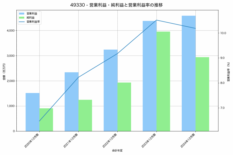 I−neの2024年12月期の営業利益は4,583百万円、営業利益率は10.2%と前年比204百万円増、営業利益率は0.3%pt減です。