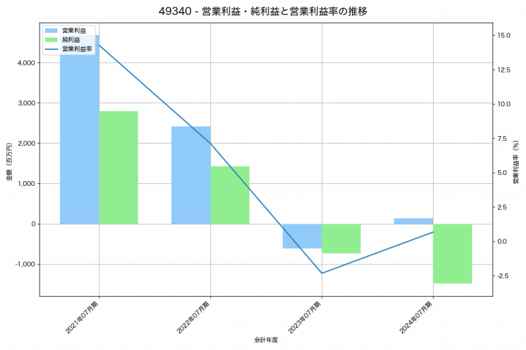 プレミアアンチエイジングの2024年07月期の営業利益は139百万円、営業利益率は0.7%と前年比750百万円増、営業利益率は3.0%pt増です。