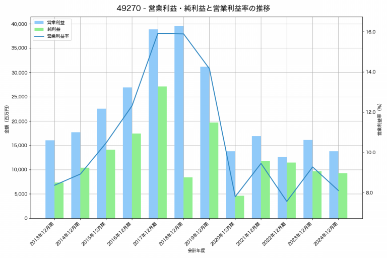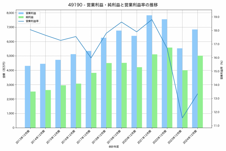 ミルボンの2024年12月期の営業利益は6,839百万円、営業利益率は13.3%と前年比1,314百万円増、営業利益率は1.8%pt増です。