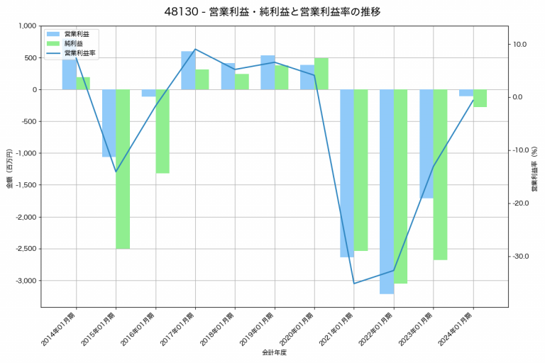 ネクストウェアの2025年03月期の営業利益は-75百万円、営業利益率は-2.5%と前年比57百万円増、営業利益率は2.2%pt増です。