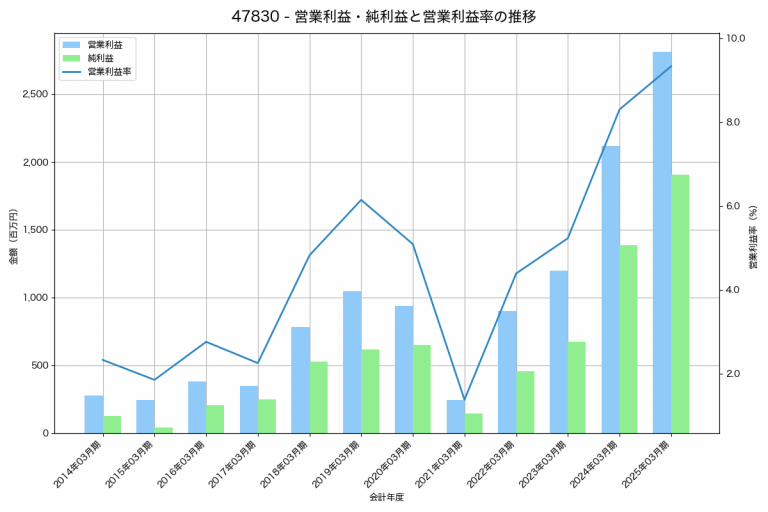 NCDの2025年03月期の営業利益は2,809百万円、営業利益率は9.3%と前年比694百万円増、営業利益率は1.0%pt増です。