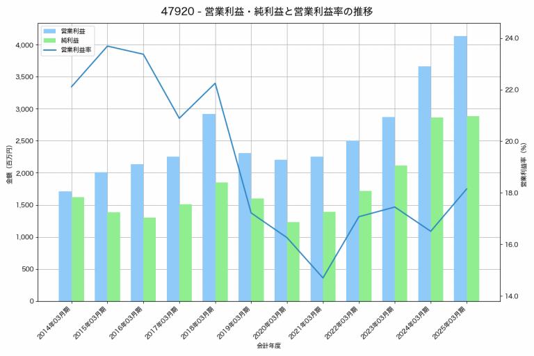 山田コンサルティンググループの2025年03月期の営業利益は4,132百万円、営業利益率は18.2%と前年比470百万円増、営業利益率は1.6%pt増です。