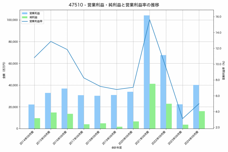 サイバーエージェントの2024年09月期の営業利益は40,083百万円、営業利益率は5.0%と前年比17,732百万円増、営業利益率は1.9%pt増です。