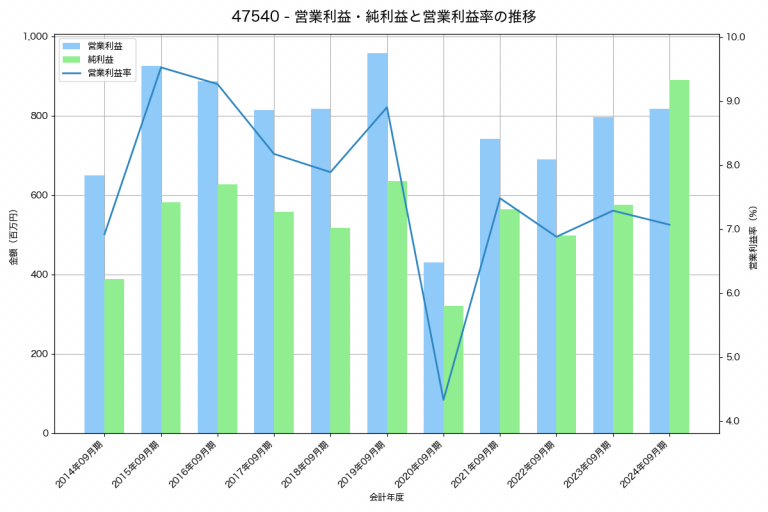 トスネットの2024年09月期の営業利益は817百万円、営業利益率は7.1%と前年比20百万円増、営業利益率は0.2%pt減です。