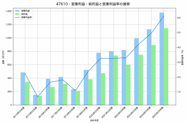 さくらケーシーエスの2025年03月期の営業利益は1,377百万円、営業利益率は6.1%と前年比250百万円増、営業利益率は1.2%pt増です。