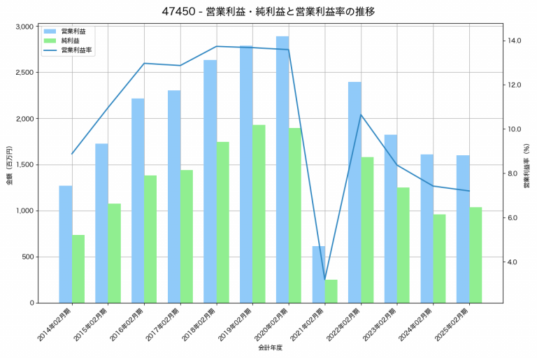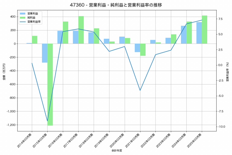 日本ラッドの2025年03月期の営業利益は318百万円、営業利益率は7.3%と前年比52百万円増、営業利益率は0.6%pt増です。
