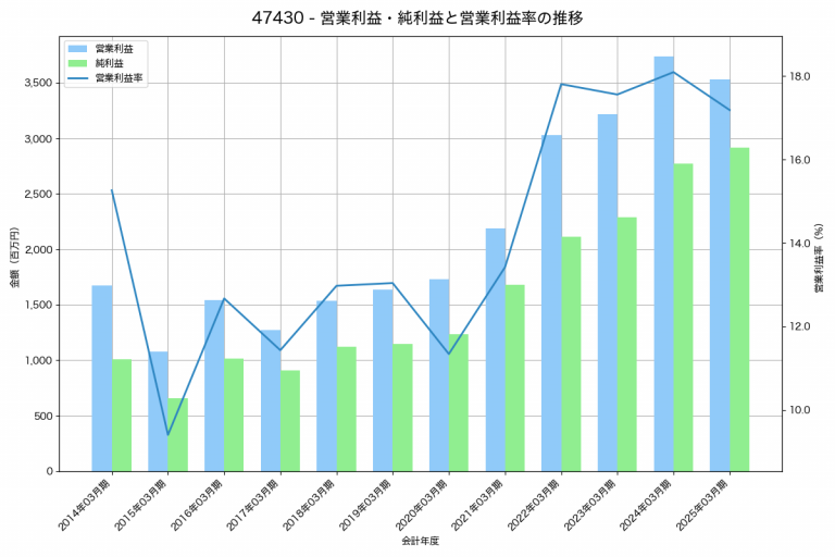 アイティフォーの2025年03月期の営業利益は3,532百万円、営業利益率は17.2%と前年比205百万円減、営業利益率は0.9%pt減です。