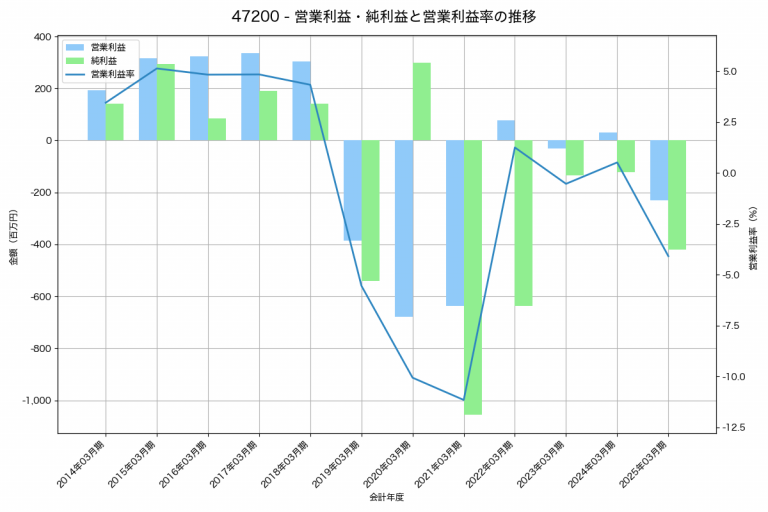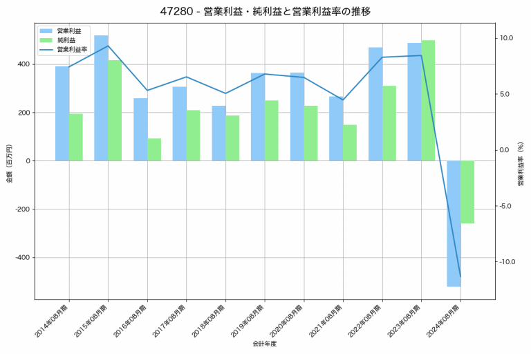 城南進学研究社の2025年03月期の営業利益は-230百万円、営業利益率は-4.1%と前年比260百万円減、営業利益率は4.6%pt減です。