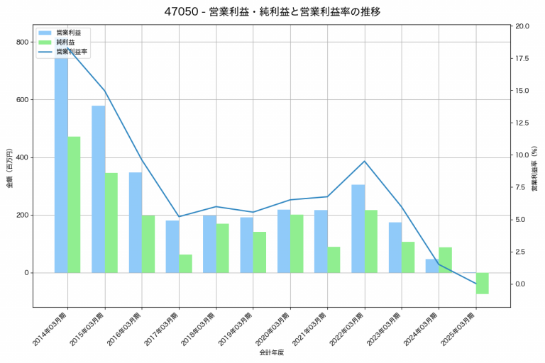 クリップコーポレーションの2025年03月期の営業利益は1百万円、営業利益率は0.0%と前年比45百万円減、営業利益率は1.5%pt減です。