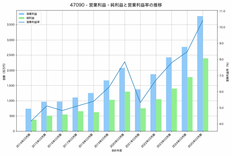 IDホールディングスの2025年03月期の営業利益は3,780百万円、営業利益率は10.4%と前年比1,011百万円増、営業利益率は1.9%pt増です。