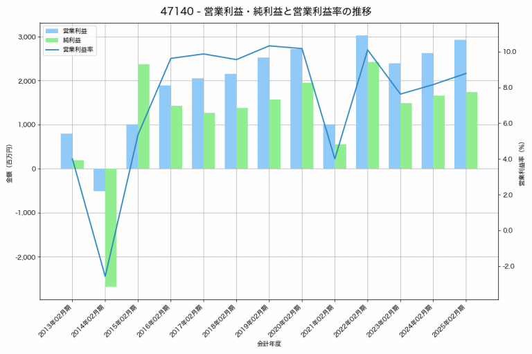 リソー教育の2025年02月期の営業利益は2,933百万円、営業利益率は8.8%と前年比305百万円増、営業利益率は0.6%pt増です。
