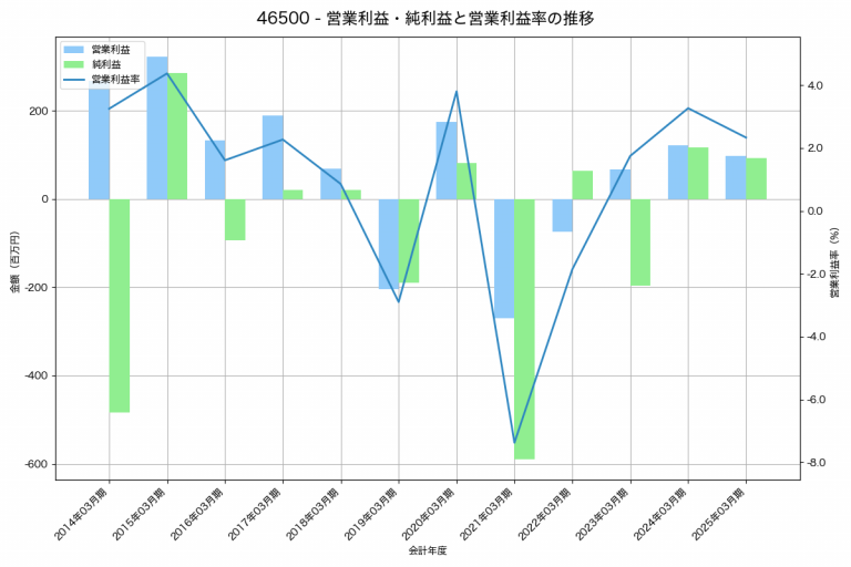サニックスホールディングスの2025年03月期の営業利益は2,227百万円、営業利益率は4.9%と前年比1,517百万円減、営業利益率は3.0%pt減です。