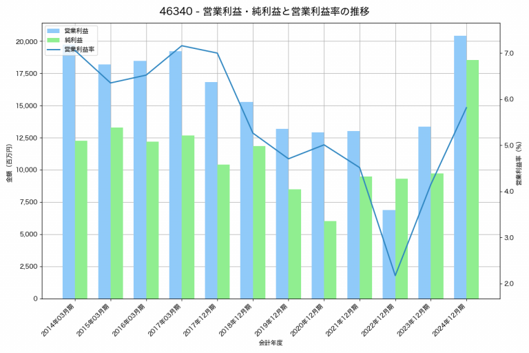 artienceの2024年12月期の営業利益は20,414百万円、営業利益率は5.8%と前年比7,042百万円増、営業利益率は1.7%pt増です。