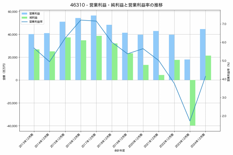 大幸薬品の2024年12月期の営業利益は629百万円、営業利益率は10.0%と前年比1,634百万円増、営業利益率は26.4%pt増です。