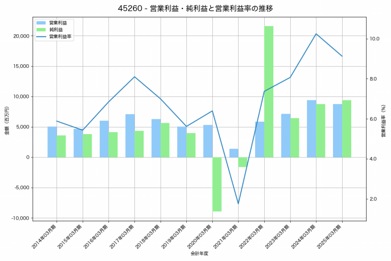 理研ビタミンの2025年03月期の営業利益は8,724百万円、営業利益率は9.1%と前年比647百万円減、営業利益率は1.1%pt減です。