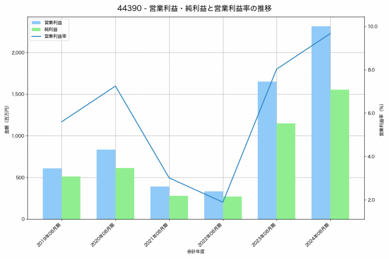 東名の2024年08月期の営業利益は2,314百万円、営業利益率は9.7%と前年比665百万円増、営業利益率は1.6%pt増です。