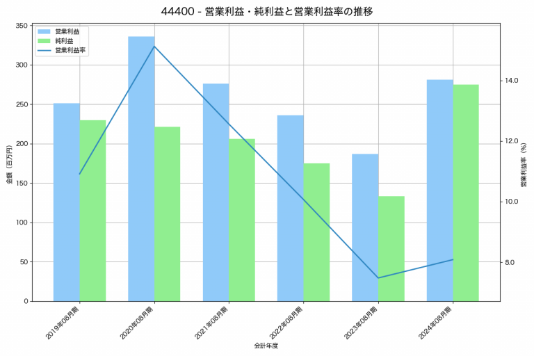 ヴィッツの2024年08月期の営業利益は281百万円、営業利益率は8.1%と前年比94百万円増、営業利益率は0.6%pt増です。