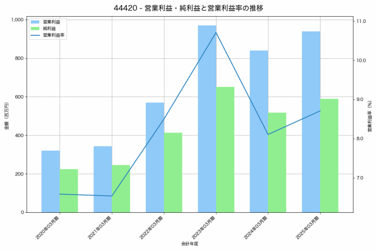 バルテス・ホールディングスの2025年03月期の営業利益は940百万円、営業利益率は8.7%と前年比100百万円増、営業利益率は0.6%pt増です。