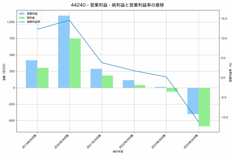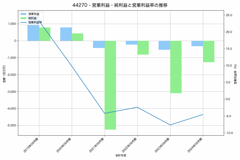 Amaziaの2024年09月期の営業利益は-400百万円、営業利益率は-11.2%と前年比410百万円減、営業利益率は11.4%pt減です。