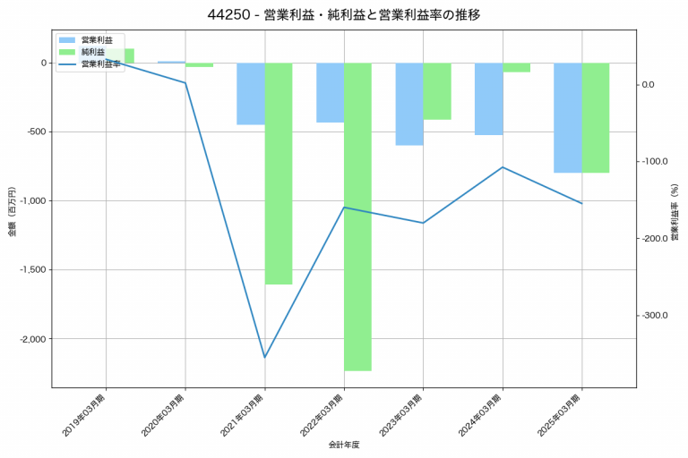Kudanの2025年03月期の営業利益は-800百万円、営業利益率は-154.7%と前年比273百万円減、営業利益率は47.2%pt減です。