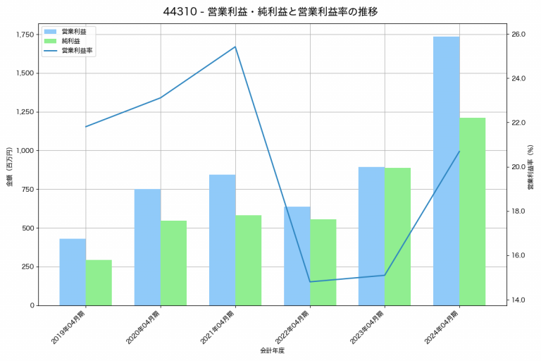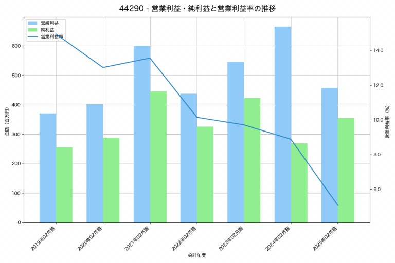 リックソフトの2025年02月期の営業利益は458百万円、営業利益率は5.1%と前年比207百万円減、営業利益率は3.8%pt減です。