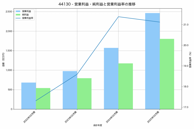 ボードルアの2025年02月期の営業利益は2,460百万円、営業利益率は21.1%と前年比893百万円増、営業利益率は0.3%pt減です。