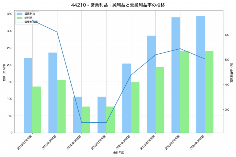 ディ・アイ・システムの2024年09月期の営業利益は344百万円、営業利益率は5.0%と前年比4百万円増、営業利益率は0.4%pt減です。