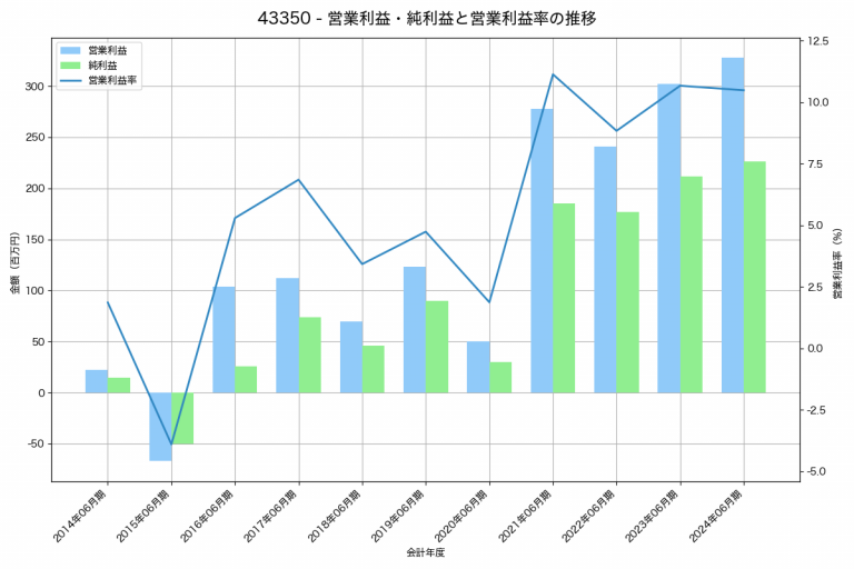 ユークスの2025年01月期の営業利益は87百万円、営業利益率は2.7%と前年比92百万円減、営業利益率は1.7%pt減です。