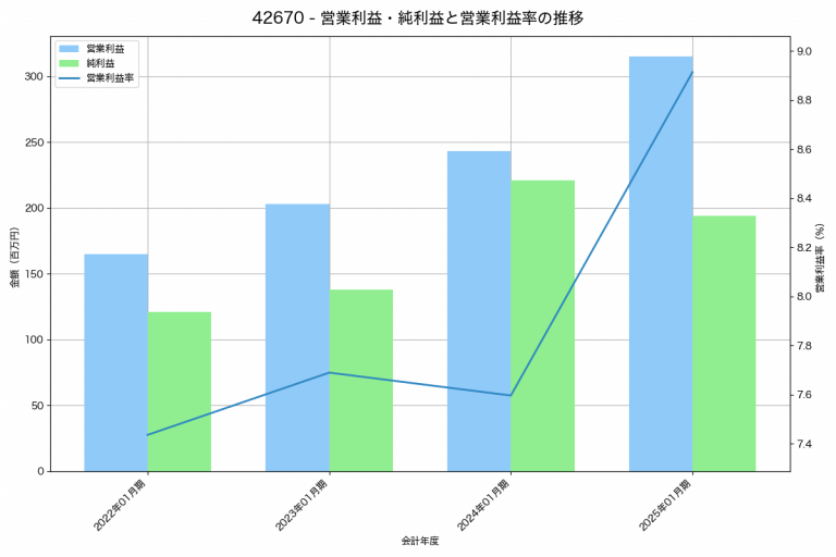 ライトワークスの2025年01月期の営業利益は315百万円、営業利益率は8.9%と前年比72百万円増、営業利益率は1.3%pt増です。