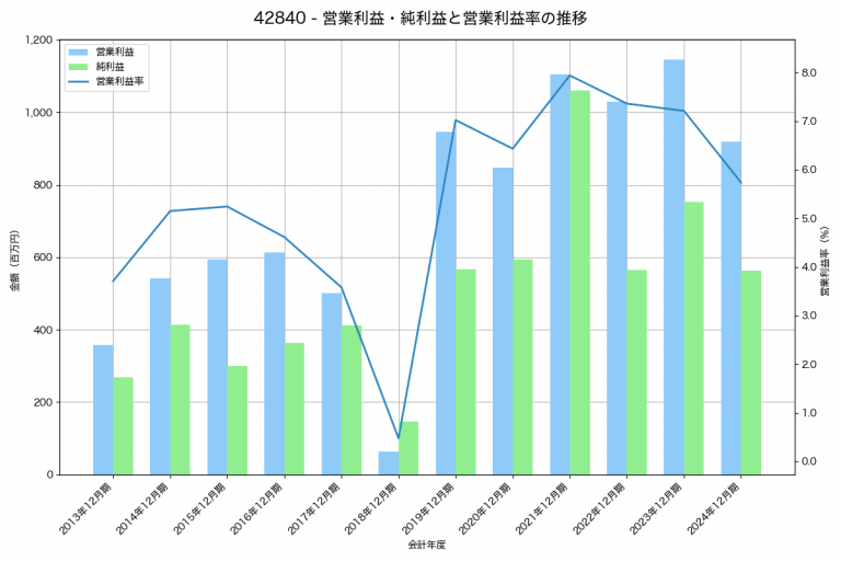 ソルクシーズの2024年12月期の営業利益は920百万円、営業利益率は5.7%と前年比225百万円減、営業利益率は1.5%pt減です。